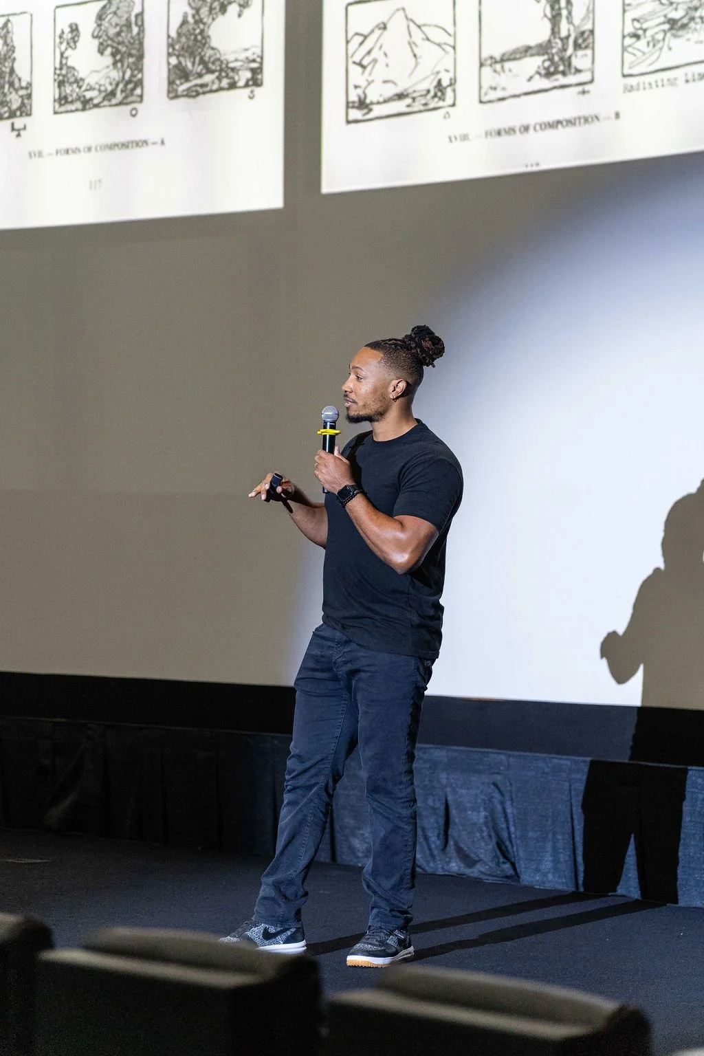 In addition to sharing his career journey, Barry used the stage to walk students through foundational concepts of art and storytelling, including: