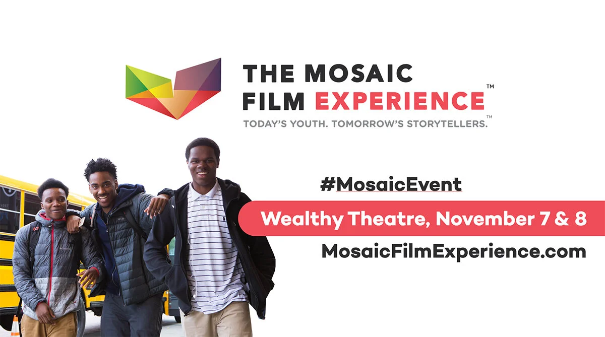 Stay up to date with all-thing Mosaic Film Experience, including details about our annual Mosaic Event, educational opportunities for students, and our latest community events. Subscribe Sign up with your email address to receive news and updates. Email Address Sign Up We respect your privacy. Thank you! News 10/21/18 News 10/21/18 The Mosaic Film Experience Event Returns to Wealthy Theatre Read More News 10/20/18 News 10/20/18 Mosaic College Event + Black Panther Screening Featuring Phillip Boutte Jr. Read More News 10/19/18 News 10/19/18 The Next Generation of Creativity Luncheon 2018 Read More News 10/12/18 News 10/12/18 Mosaic Film Experience: The ArtPrize Film Challenge Read More News 10/11/18 News 10/11/18 ArtPrize On Screen Read More News 9/27/18 News 9/27/18 City Stories: Reflections at ArtPrize Read More News 9/25/18 News 9/25/18 NEWS RELEASE: Mobile film contest provides West Michigan students with a platform to tell their unique stories. Read More News 8/14/18 News 8/14/18 Boys and Girls Clubs Students Take on Green Screens Read More News 8/13/18 News 8/13/18 Loop Program Students Learn Storytelling and Filmmaking Skills Read More News 8/7/18 News 8/7/18 G-Cubed Program Teaches Girls They Have a Voice Read More News 8/2/18 News 8/2/18 Baxter Community Center and the Periodic Table Read More News 4/26/18 News 4/26/18 Standing Up for Michigan Arts Programs Read More News 4/5/18 News 4/5/18 Mosaic Film Experience Partners with the Michigan Invention Convention Read More News 4/2/18 News 4/2/18 Mosaic Film Experience Founder Joins Other Michigan Leaders on Education Matters at South by Southwest Festival Read More News 3/2/18 News 3/2/18 2018 Mosaic Film Experience Event Dates Announced Read More News 2/2/18 News 2/2/18 Mosaic Film Experience Founder to Speak at South by Southwest Festival Read More News 12/6/17 News 12/6/17 More Art Upstairs Read More News 11/27/17 News 11/27/17 Mosaic Film Experience YouTube Project Read More News 11/27/17 News 11/27/17 RECAP: 2017 Mosaic Film Experience Event Read More News 11/21/17 News 11/21/17 What Makes an Icon? Read More Newer Posts Older Posts